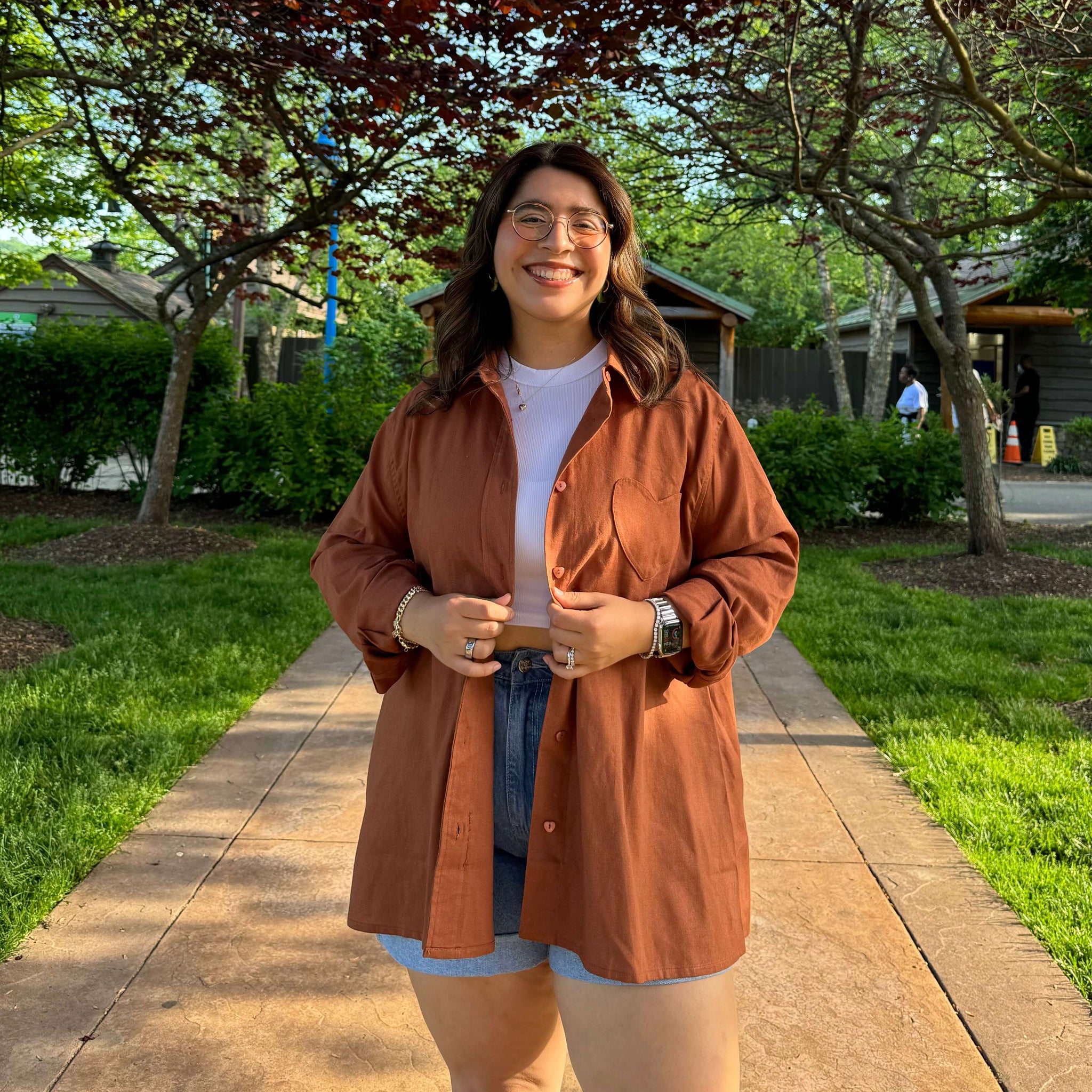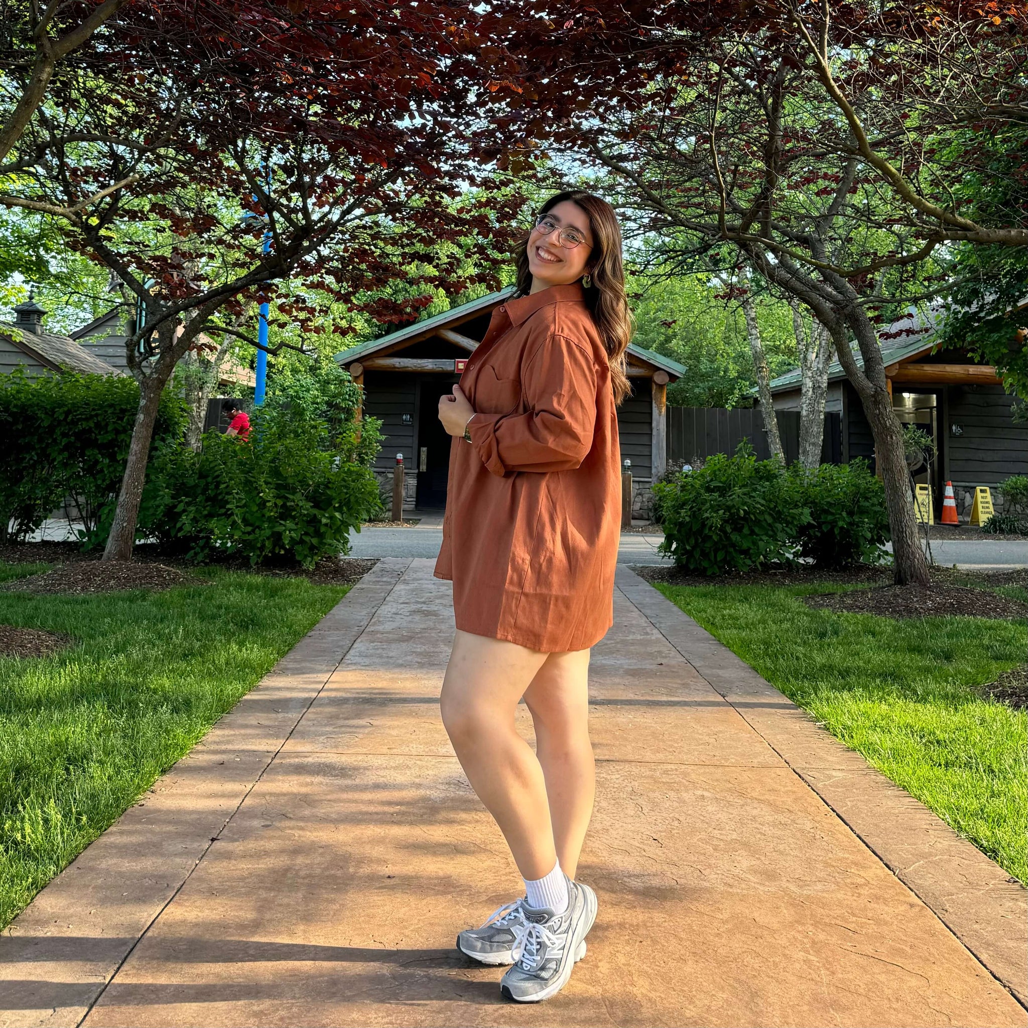 We recommend following your bust measurement to determine size. This button-up is meant to be slightly fitted at the bust & slightly loose around the hips :)